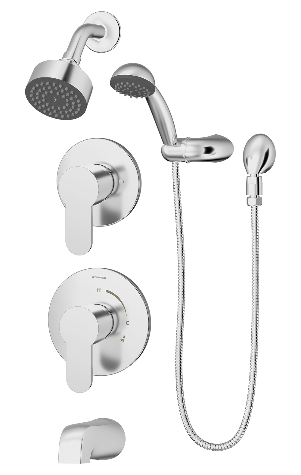 The individuality of recent customer projects inspired the Symmons Identity Collection’s balance of sleek curves and defined edges with stylish simplicity. Its distinct contours bring a modern touch with hints of retro Space Age design.