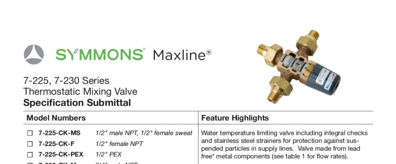Symmons recognizes that safety and reliability are important factors when selecting a Thermostatic Mixing Valve, and the MaxLine is dual certified to ASSE 1070/1017 standards. The MaxLine TMV valve has been improved to function at a lower flow range, with a smaller footprint, fewer parts, and a durable brass body. The new MaxLine retains its enduring quality and industry-leading scald protection that is synonymous with the Symmons name.