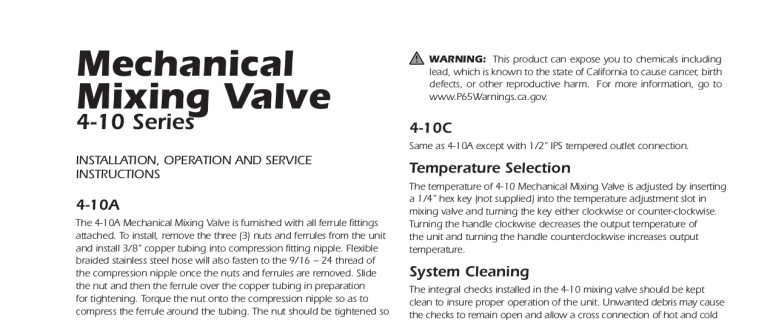 • Mechanical mixing valve