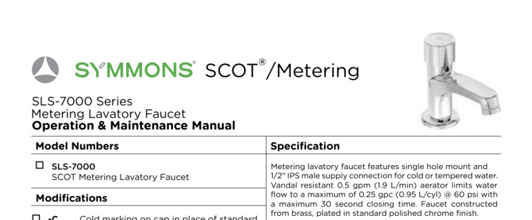 The SCOT/Metering faucet delivers consistent metered wash cycles for commercial, healthcare, hospitality, and other demanding high-use applications. The all-metal body features a deep chrome finish, a self-cleaning cartridge, and the single-lever handle equals fewer parts, easier installation, and lower maintenance. With safety, compliance, and conservation in mind, the SCOT offers the flexibility to adjust both the wash cycle time and the water temperature. The SCOT is also fully compliant with ADA regulations for accessibility and operation.
