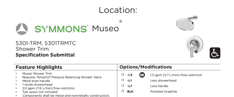 Inspired by iconic works of Modern Art, the Symmons Museo Collection’s portrays a striking, contemporary design. The clean styling and dramatic finishes make a definitive statement in any bath décor.