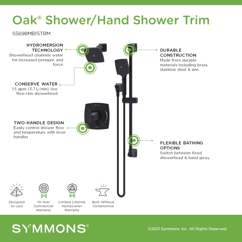 Oak Shower and Hand Shower Trim with VersaFlex Integral Diverter
