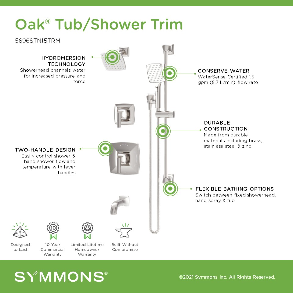• 26 series Symmons Temptrol valve and 3DIVBODYSRT three-function diverter valve required (Not included)