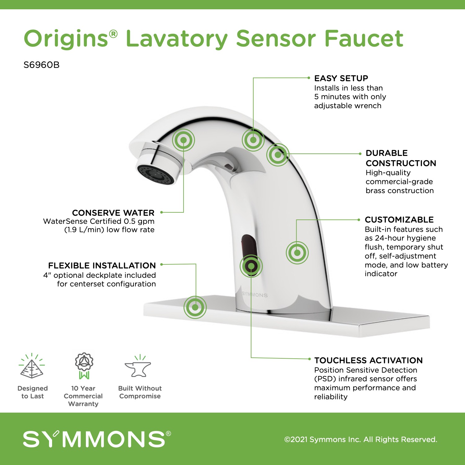 As a combination of three core Symmons products, the Origins Collection combines legendary quality with a fresh stylings for faucets and showers. Powered by Temptrol®, this collection offers easy installation and proven durability with an attractive new design.