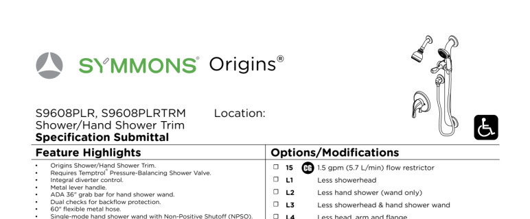 As a combination of three core Symmons products, the Origins Collection combines legendary quality with a fresh stylings for faucets and showers. Powered by Temptrol®, this collection offers easy installation and proven durability with an attractive new design.