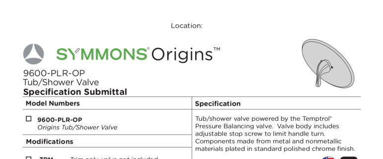 As a combination of three core Symmons products, the Origins Collection combines legendary quality with a fresh stylings for faucets and showers. Powered by Temptrol®, this collection offers easy installation and proven durability with an attractive new design.