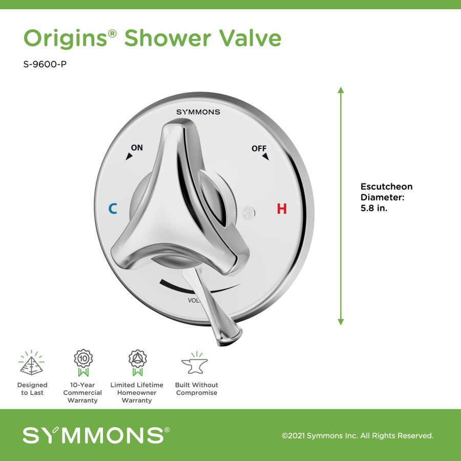 As a combination of three core Symmons products, the Origins Collection combines legendary quality with a fresh stylings for faucets and showers. Powered by Temptrol®, this collection offers easy installation and proven durability with an attractive new design.