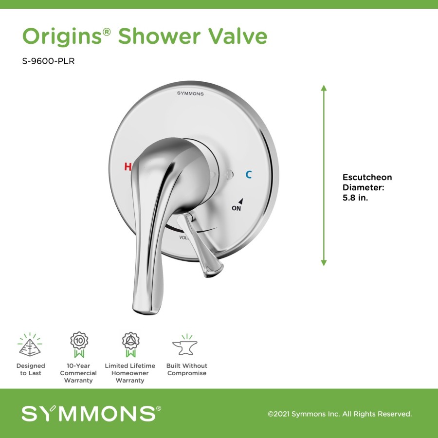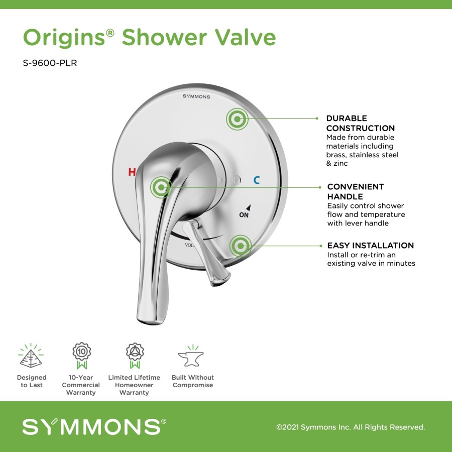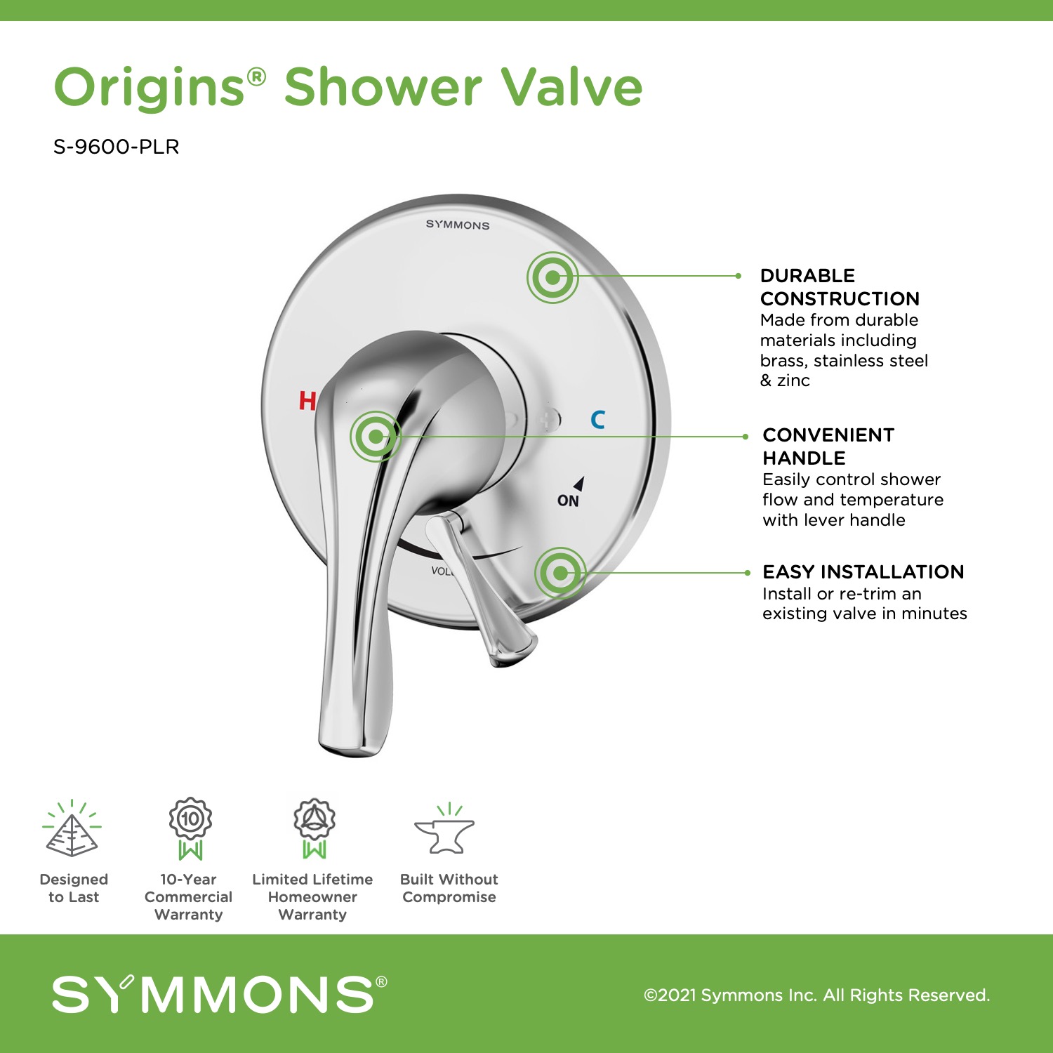 As a combination of three core Symmons products, the Origins Collection combines legendary quality with a fresh stylings for faucets and showers. Powered by Temptrol®, this collection offers easy installation and proven durability with an attractive new design.