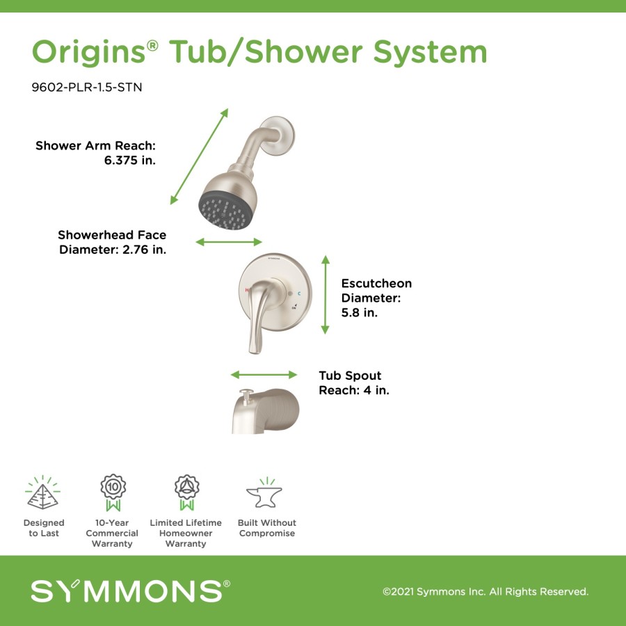 As a combination of three core Symmons products, the Origins Collection combines legendary quality with a fresh stylings for faucets and showers. Powered by Temptrol®, this collection offers easy installation and proven durability with an attractive new design.