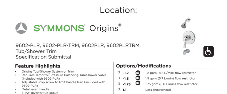 As a combination of three core Symmons products, the Origins Collection combines legendary quality with a fresh stylings for faucets and showers. Powered by Temptrol®, this collection offers easy installation and proven durability with an attractive new design.