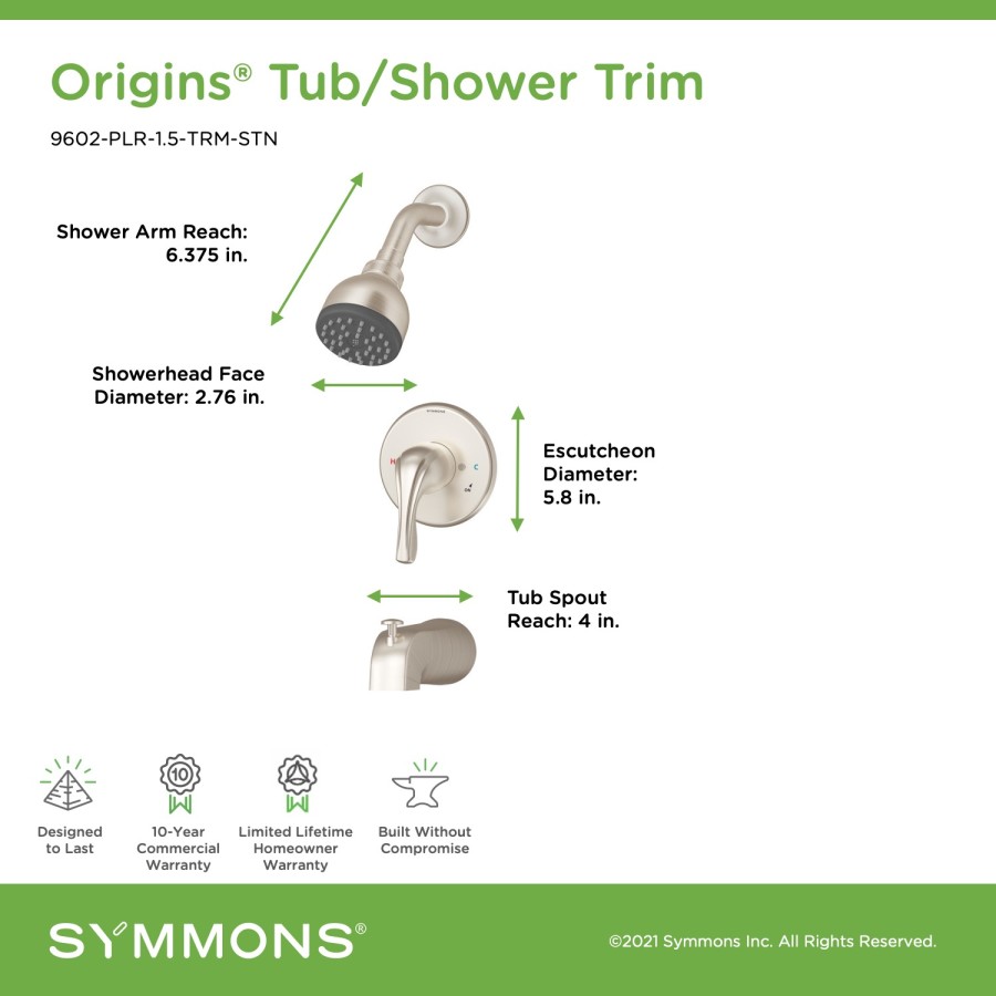 As a combination of three core Symmons products, the Origins Collection combines legendary quality with a fresh stylings for faucets and showers. Powered by Temptrol®, this collection offers easy installation and proven durability with an attractive new design.