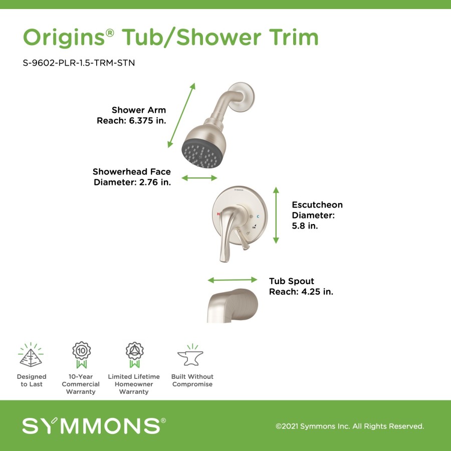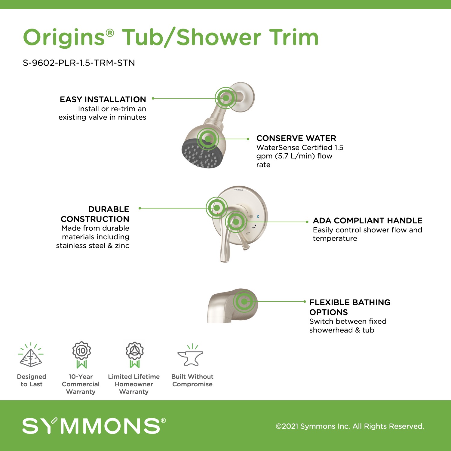 As a combination of three core Symmons products, the Origins Collection combines legendary quality with a fresh stylings for faucets and showers. Powered by Temptrol®, this collection offers easy installation and proven durability with an attractive new design.