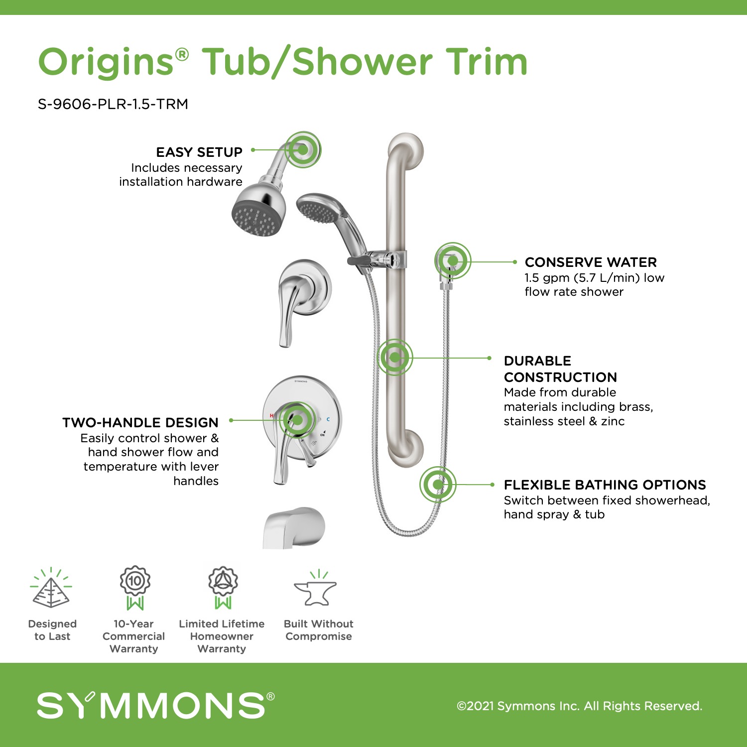 As a combination of three core Symmons products, the Origins Collection combines legendary quality with a fresh stylings for faucets and showers. Powered by Temptrol®, this collection offers easy installation and proven durability with an attractive new design.