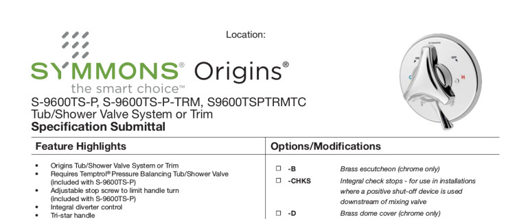 As a combination of three core Symmons products, the Origins Collection combines legendary quality with a fresh stylings for faucets and showers. Powered by Temptrol®, this collection offers easy installation and proven durability with an attractive new design.