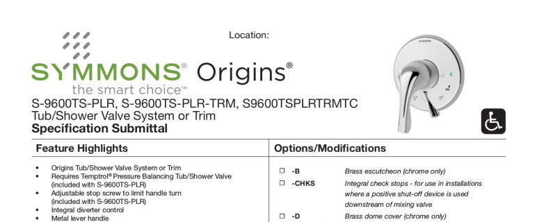 As a combination of three core Symmons products, the Origins Collection combines legendary quality with a fresh stylings for faucets and showers. Powered by Temptrol®, this collection offers easy installation and proven durability with an attractive new design.