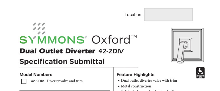 The artful squared aesthetics define the Oxford Collection from Symmons. Its prominent traditional styling is intended to be the focal point of traditional or transitional bath spaces.