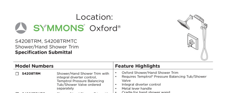 The artful squared aesthetics define the Oxford Collection from Symmons. Its prominent traditional styling is intended to be the focal point of traditional or transitional bath spaces.