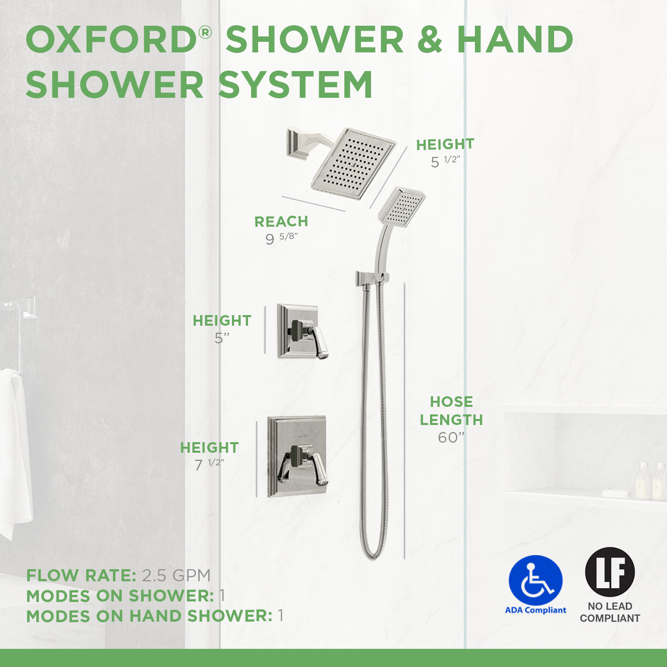 The artful squared aesthetics define the Oxford Collection from Symmons. Its prominent traditional styling is intended to be the focal point of traditional or transitional bath spaces.