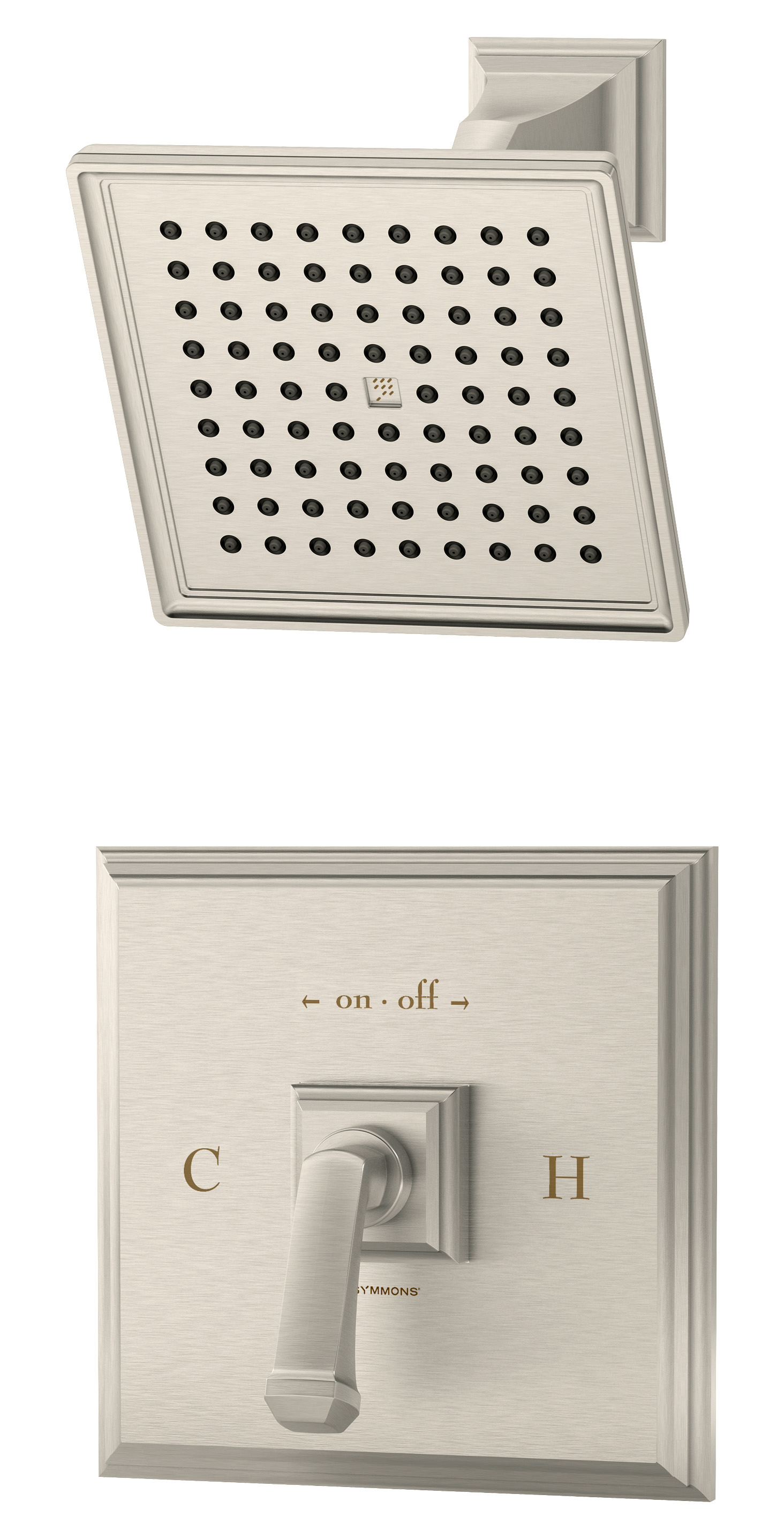 The artful squared aesthetics define the Oxford Collection from Symmons. Its prominent traditional styling is intended to be the focal point of traditional or transitional bath spaces.