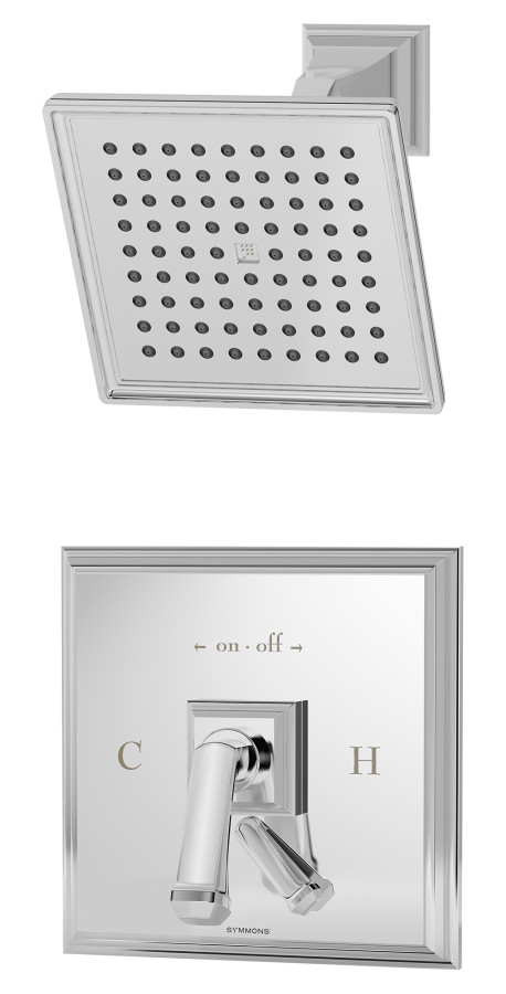 The artful squared aesthetics define the Oxford Collection from Symmons. Its prominent traditional styling is intended to be the focal point of traditional or transitional bath spaces.