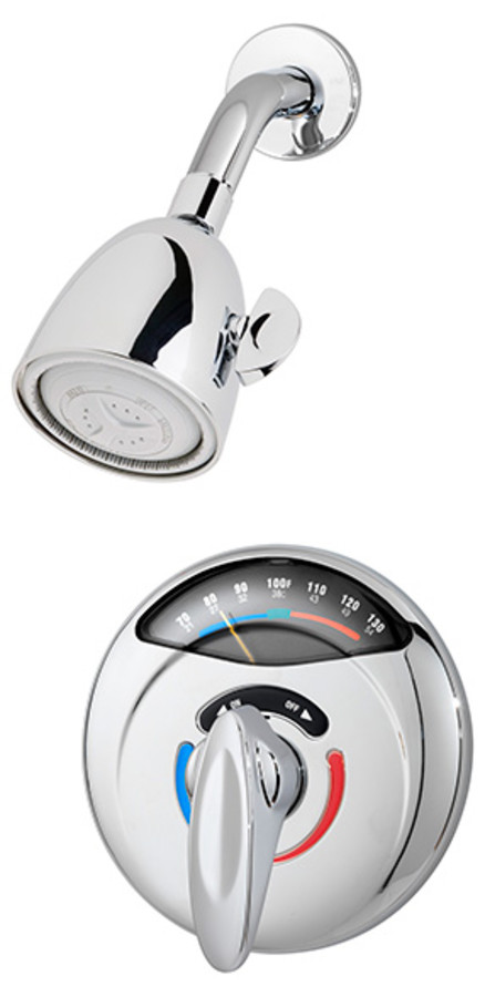 Visu-Temp® Clear-Vue™ shower valves are the perfect choice for specialized care applications. The easy-to-read display and built-in thermometer clearly displays the output water temperature for safety and convenience. With a streamlined single-handle control and durable finish on the outside, the Visu-Temp relies on the Safetymix® pressure-balancing valve behind the wall, which shuts down water flow in the event of failure in hot or cold water supply.