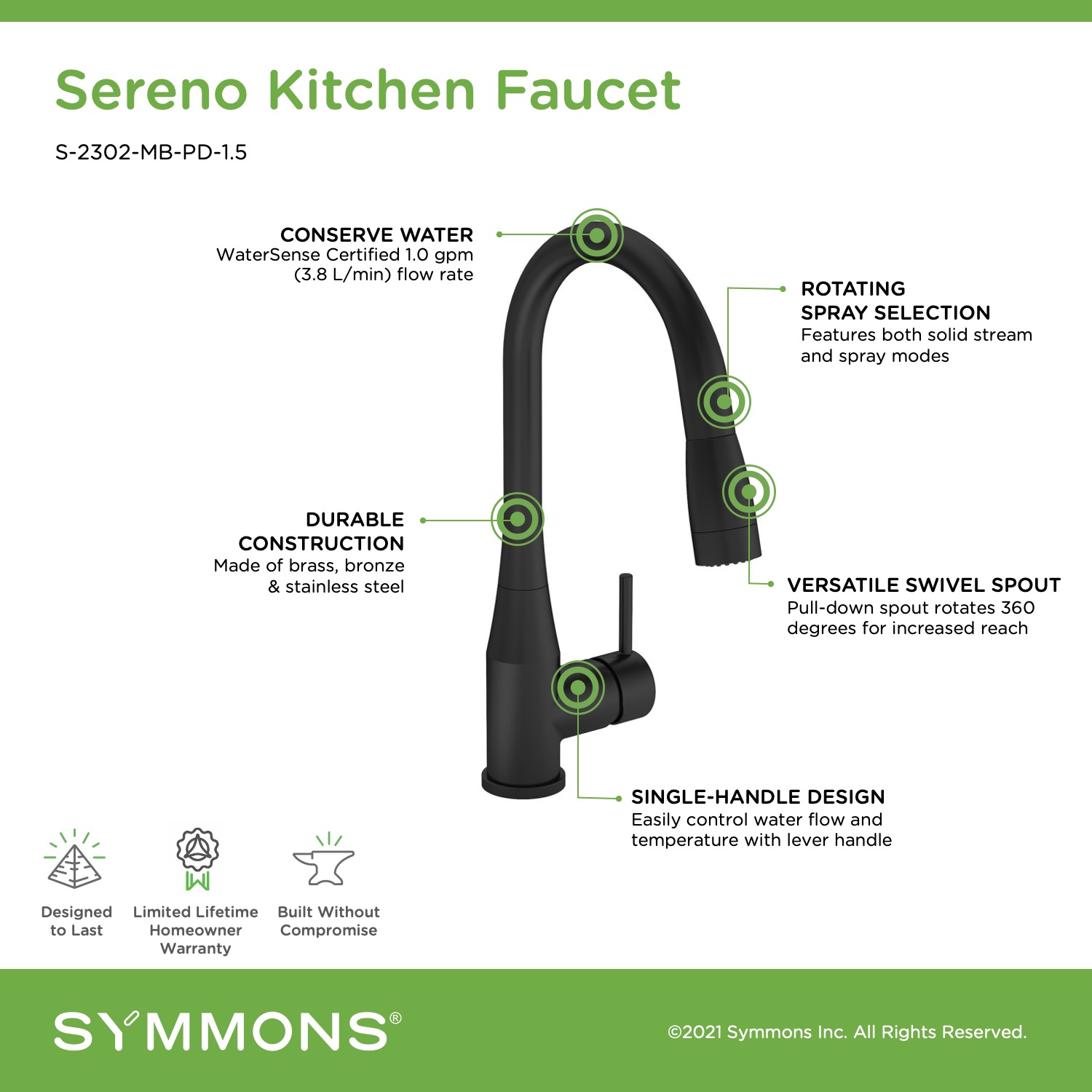 The contemporary design of the Symmons Sereno Collection presents interesting curves and unique stylings to create a minimalist palette that blends with a wide variety of bathroom spaces.