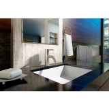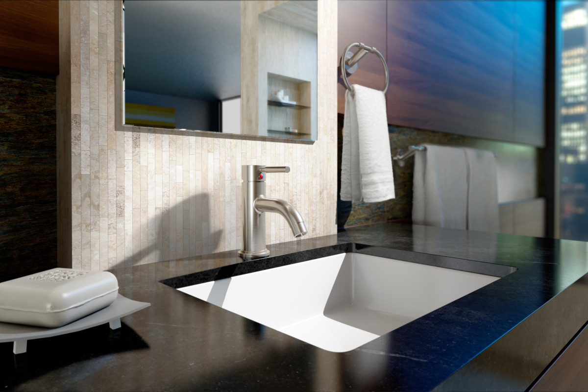 The contemporary design of the Symmons Sereno Collection presents interesting curves and unique stylings to create a minimalist palette that blends with a wide variety of bathroom spaces.