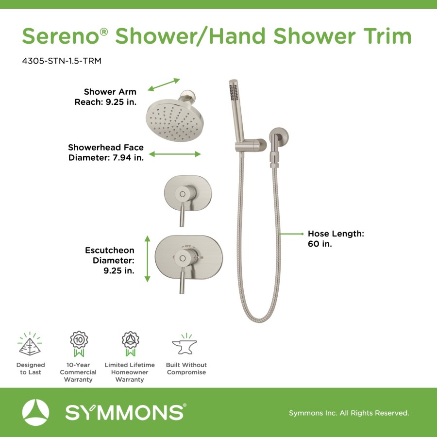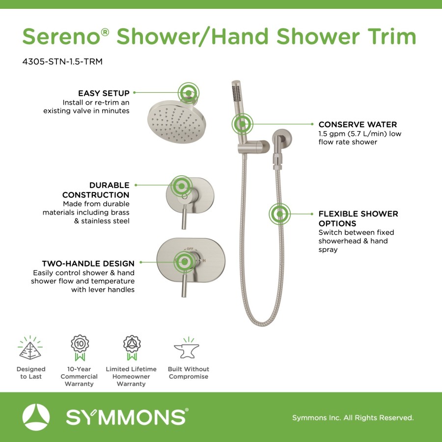 The contemporary design of the Symmons Sereno Collection presents interesting curves and unique stylings to create a minimalist palette that blends with a wide variety of bathroom spaces.