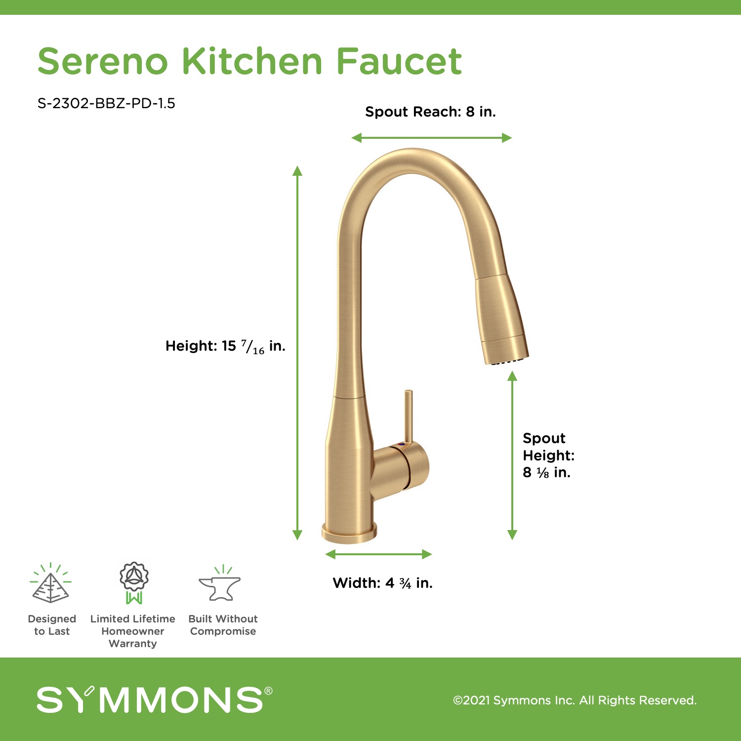 The contemporary design of the Symmons Sereno Collection presents interesting curves and unique stylings to create a minimalist palette that blends with a wide variety of bathroom spaces.