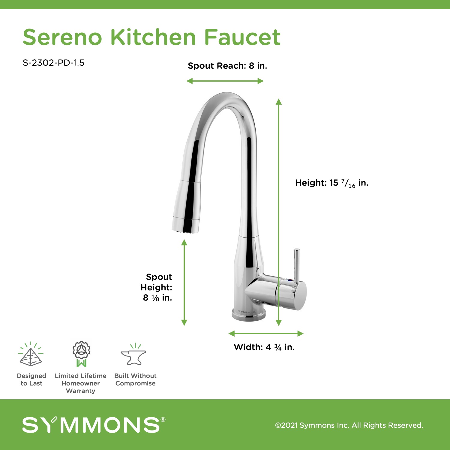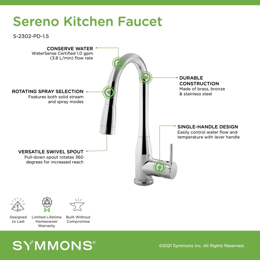 The contemporary design of the Symmons Sereno Collection presents interesting curves and unique stylings to create a minimalist palette that blends with a wide variety of bathroom spaces.