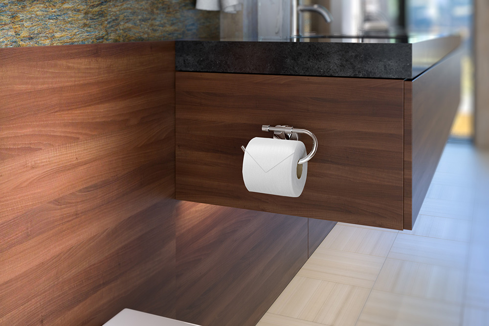 The contemporary design of the Symmons Sereno Collection presents interesting curves and unique stylings to create a minimalist palette that blends with a wide variety of bathroom spaces.