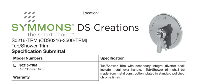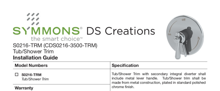 • Symmons tub/shower trim with secondary integral diverter