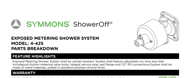 Symmons Showeroff® is a durable, piston-actuated metering shower valve that provides full shower flow for approximately 45 seconds to minimize water consumption and reduce energy costs. This showering solution is ideal for correctional facilities, public showers, or applications where metered control of water usage is necessary.