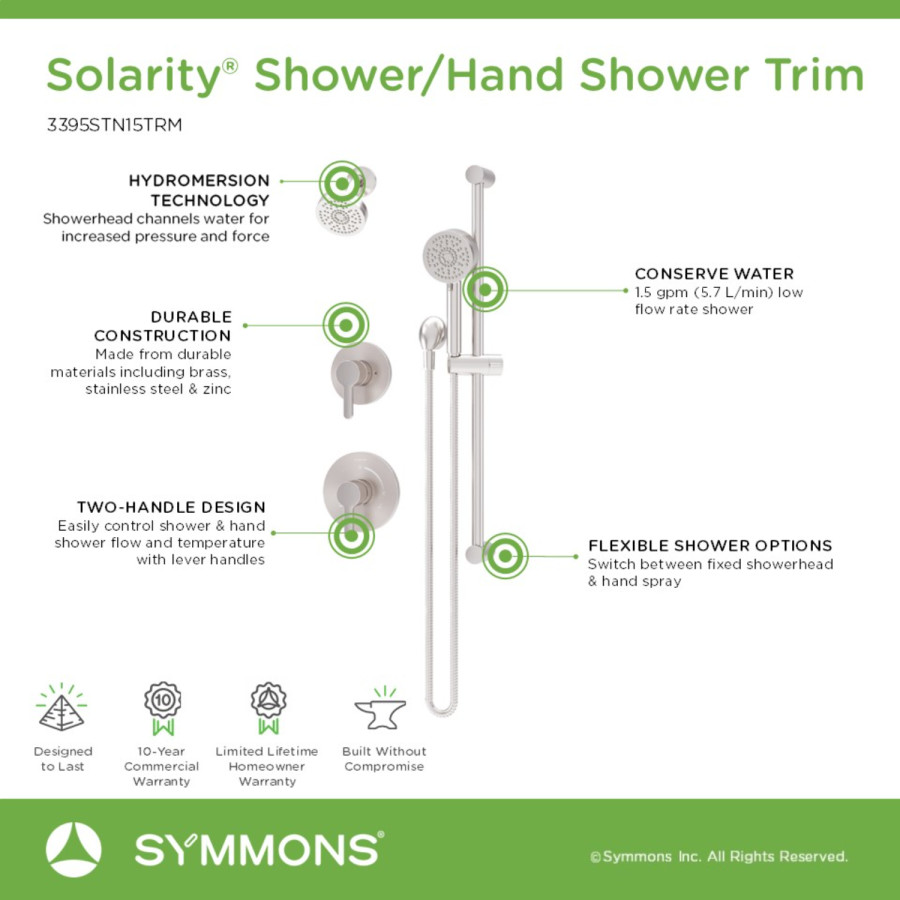 Contemporary style. Durable design. Quality materials. Solarity showers, faucets, and accessories by Symmons outshine all others.
