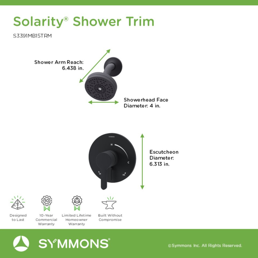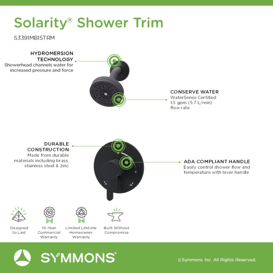 Contemporary style. Durable design. Quality materials. Solarity showers, faucets, and accessories by Symmons outshine all others.