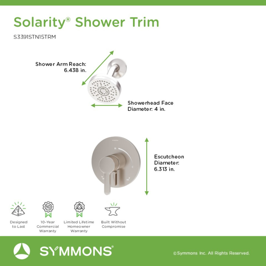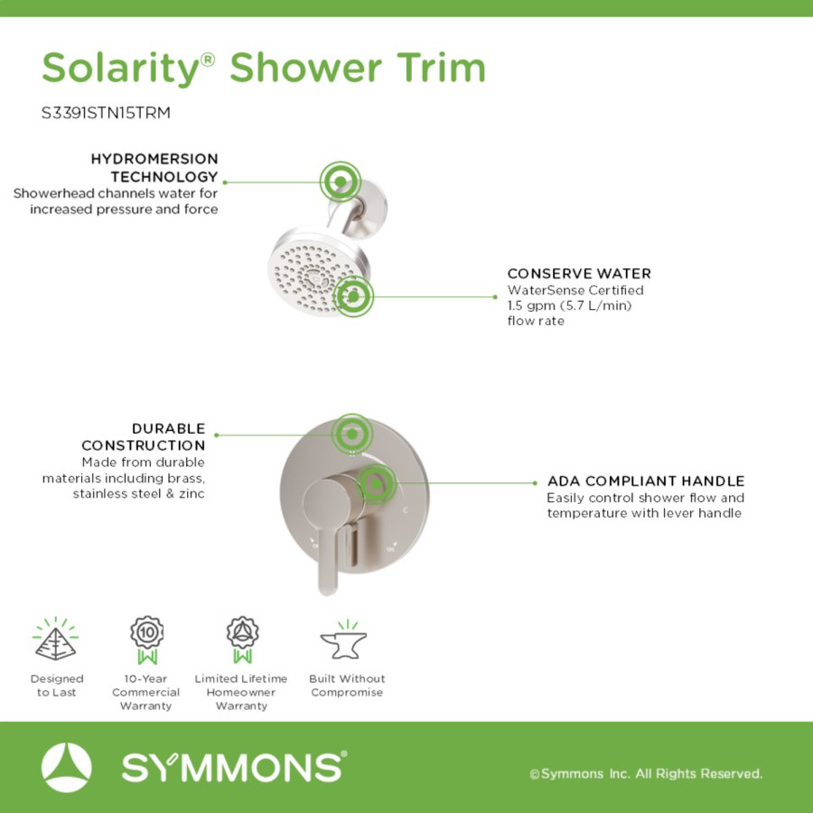 Contemporary style. Durable design. Quality materials. Solarity showers, faucets, and accessories by Symmons outshine all others.
