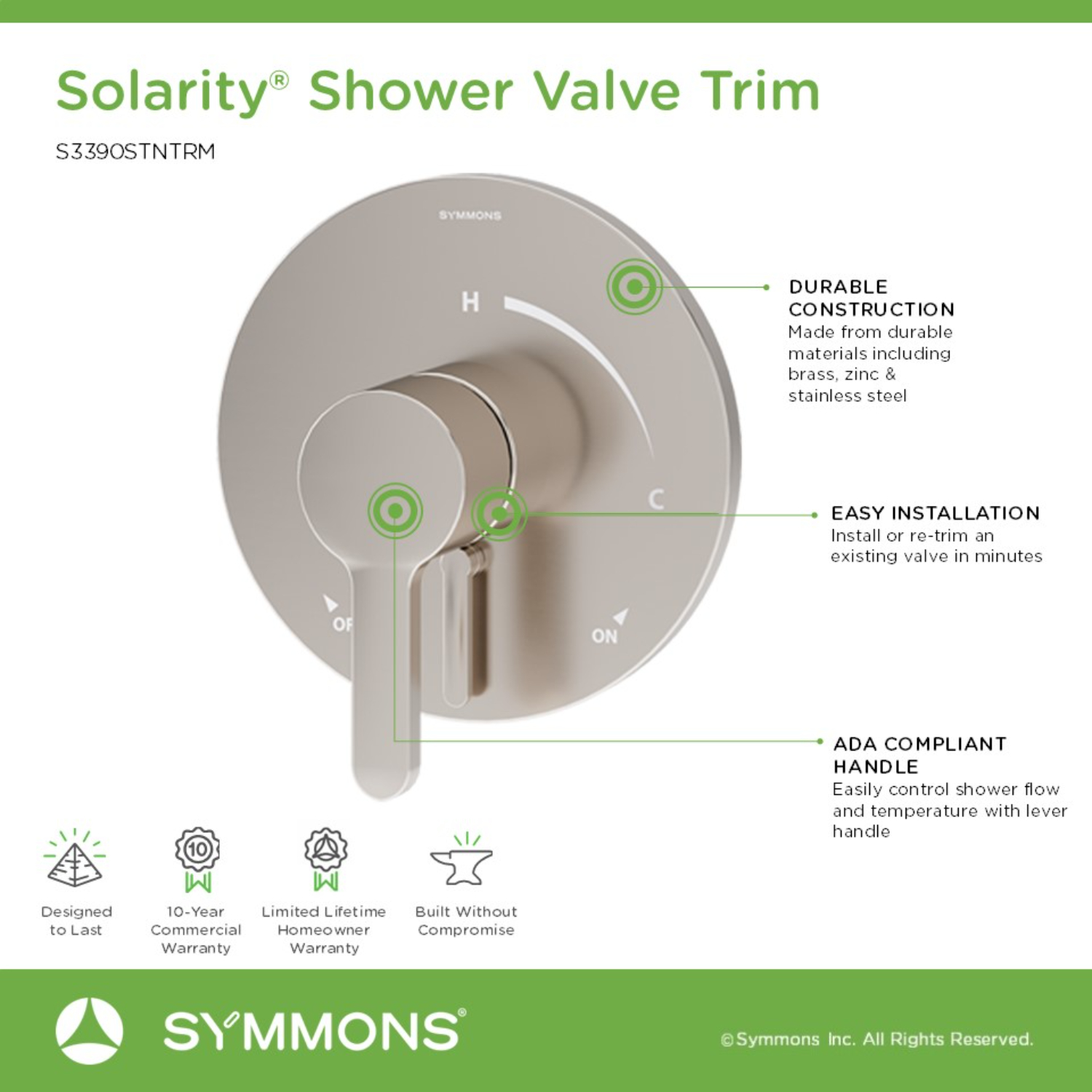 Contemporary style. Durable design. Quality materials. Solarity showers, faucets, and accessories by Symmons outshine all others.