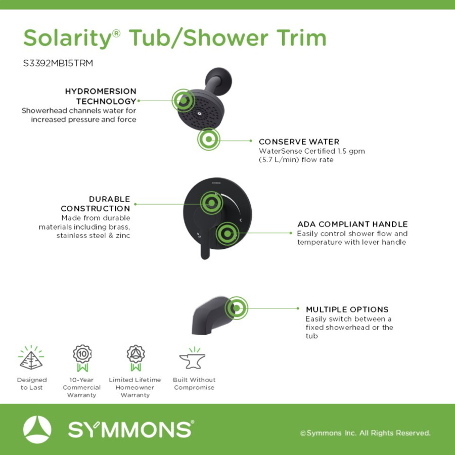 Contemporary style. Durable design. Quality materials. Solarity showers, faucets, and accessories by Symmons outshine all others.