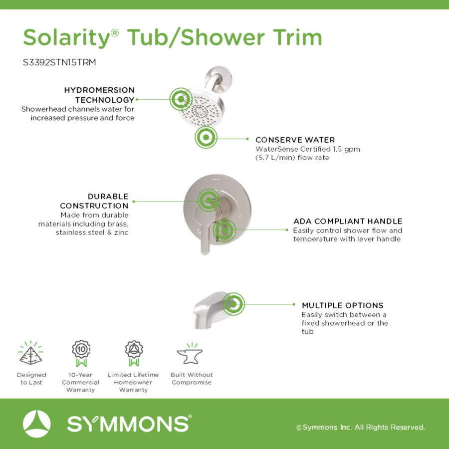 Contemporary style. Durable design. Quality materials. Solarity showers, faucets, and accessories by Symmons outshine all others.