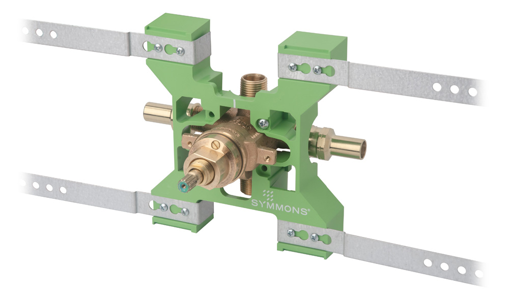 The legendary Temptrol pressure-balancing, anti-scald mixing valve is the heart of every Symmons tub and shower system, and it is the benchmark by which all others are judged. Each valve is constructed of solid brass, bronze, and stainless steel, and features an adjustable piston that instantly and continually balances the hot and cold water pressure as demand fluctuates in the plumbing system. Now Temptrol is even easier to install with the Rapid Install bracket system for virtually any rough-in situation, and factory-installed options for various water supply connection methods.