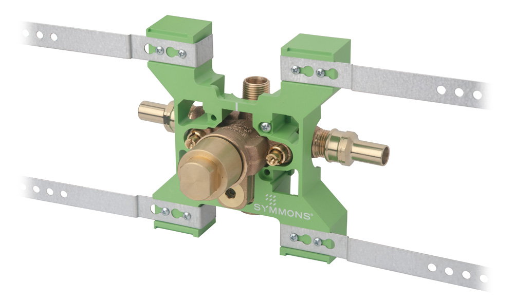 The legendary Temptrol pressure-balancing, anti-scald mixing valve is the heart of every Symmons tub and shower system, and it is the benchmark by which all others are judged. Each valve is constructed of solid brass, bronze, and stainless steel, and features an adjustable piston that instantly and continually balances the hot and cold water pressure as demand fluctuates in the plumbing system. Now Temptrol is even easier to install with the Rapid Install bracket system for virtually any rough-in situation, and factory-installed options for various water supply connection methods.