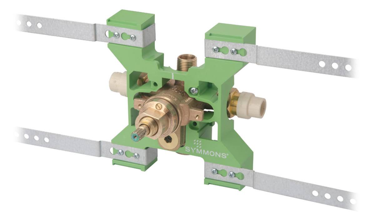 The legendary Temptrol pressure-balancing, anti-scald mixing valve is the heart of every Symmons tub and shower system, and it is the benchmark by which all others are judged. Each valve is constructed of solid brass, bronze, and stainless steel, and features an adjustable piston that instantly and continually balances the hot and cold water pressure as demand fluctuates in the plumbing system. Now Temptrol is even easier to install with the Rapid Install bracket system for virtually any rough-in situation, and factory-installed options for various water supply connection methods.