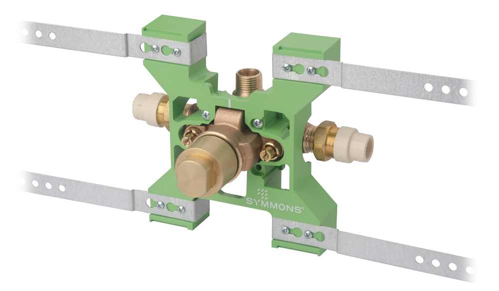 The legendary Temptrol pressure-balancing, anti-scald mixing valve is the heart of every Symmons tub and shower system, and it is the benchmark by which all others are judged. Each valve is constructed of solid brass, bronze, and stainless steel, and features an adjustable piston that instantly and continually balances the hot and cold water pressure as demand fluctuates in the plumbing system. Now Temptrol is even easier to install with the Rapid Install bracket system for virtually any rough-in situation, and factory-installed options for various water supply connection methods.