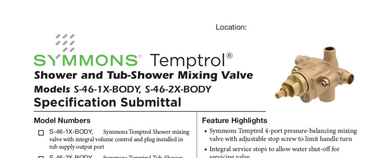 The legendary Temptrol pressure-balancing, anti-scald mixing valve is the heart of every Symmons tub and shower system, and it is the benchmark by which all others are judged. Each valve is constructed of solid brass, bronze, and stainless steel, and features an adjustable piston that instantly and continually balances the hot and cold water pressure as demand fluctuates in the plumbing system. Now Temptrol is even easier to install with the Rapid Install bracket system for virtually any rough-in situation, and factory-installed options for various water supply connection methods.