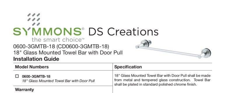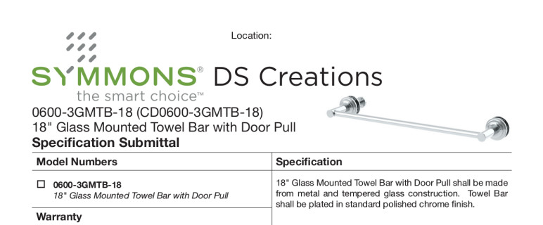 • DS Creations 18" glass mounted towel bar with door pull