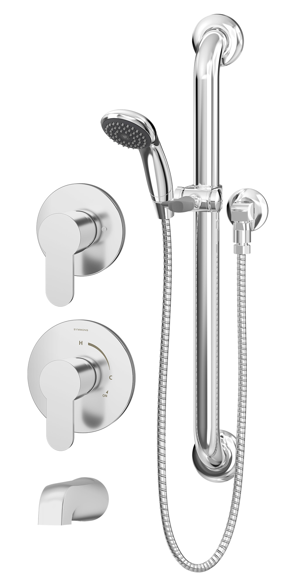 The individuality of recent customer projects inspired the Symmons Identity Collection’s balance of sleek curves and defined edges with stylish simplicity. Its distinct contours bring a modern touch with hints of retro Space Age design.