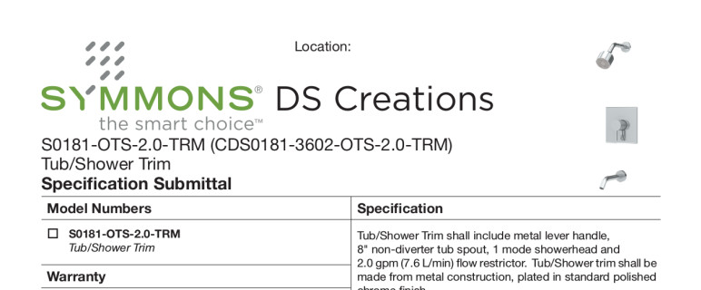 • Symmons tub/shower trim