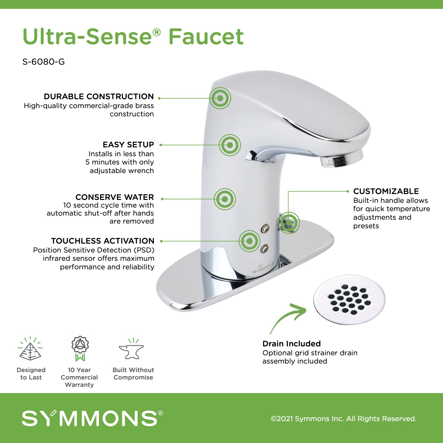 • Limited lifetime warranty for consumer; 10 year warranty for commercial use