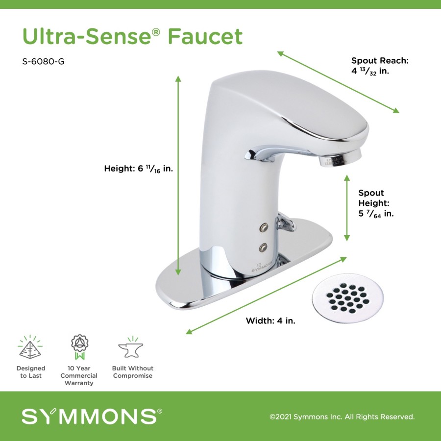 Ultra-Sense faucets offer touch-free operation for fully hygienic hand-washing solutions in commercial, educational, healthcare, and other public washroom environments. Ultra-Sense faucets use Position Sensitive Detection (PSD) for reactive control and to reduce wasted water. Ultra-Sense faucets utilize various battery or AC power options to adapt to any application.