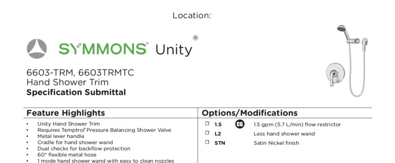 • Unity hand shower trim